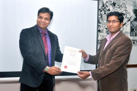 Dr Shailesh presenting certificate to Dr Vishal R.